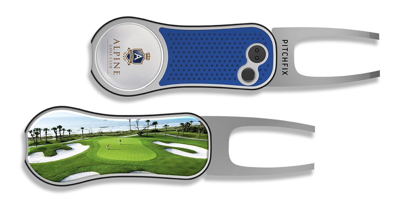 The XL provides golf venues with unlimited possibilities to create a custom branded tool for their retail ranges or event gifts. The colorful front panel and fully customizable back panels can feature logos, artwork or images, digitally printed directly onto the tool or using an epoxy dome insert.